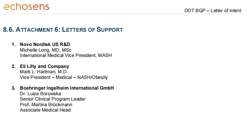 FDA此次對意向書的認可具有里程碑意義,標志著VCTE成為全球首個且目前唯一獲得FDA官方認可、進入MASH藥物研發(fā)工具資格認證流程的無創(chuàng)檢測技術(shù)。這一決定主要基于FibroScan?在肝臟疾病藥物開發(fā)(尤其是MASH領(lǐng)域)中卓越的臨床驗證與實際應用表現(xiàn)。FibroScan?獲得了超過5600篇同行評議論文的有力支持,其中包括多項關(guān)鍵研究((Gawrieh et al., Journal of Hepatology, 2024, Lin et al., JAMA, 2024, and Mózes et al., Lancet Gastroenterol Hepatol, 2023),這些研究一致表明VCTE測量的LSM變化與肝臟相關(guān)臨床結(jié)局具有顯著相關(guān)性。在Echosens提交至FDA的申請材料中,還包括了禮來、勃林格殷格翰和諾和諾德等國際領(lǐng)先藥企的官方支持函,進一步鞏固了其行業(yè)權(quán)威性與認可度。
